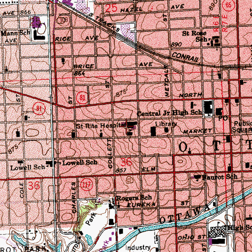 You can view this location or feature in our Topographic Map Viewer now. Click on map above to begin viewing in our Map Viewer. Here are some other places near Saint Rita's Medical Center that may be of interest: