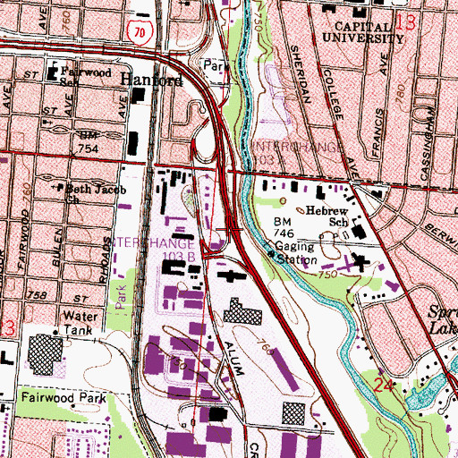 Interchange 103B, Ohio Interchange 103B is a crossing located in Franklin County, OH at N39.94590° W82.94351° (NAD83) and at an elevation of 770 ft MSL. It can be seen on the USGS 1:24K topographic map Southeast Columbus, OH.
