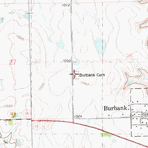 You can view this location or feature in our Topographic Map Viewer now. Click on map above to begin viewing in our Map Viewer. Here are some other places near Burbank Cemetery that may be of interest: