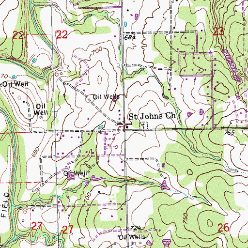 Saint Johns Church, Oklahoma Saint Johns Church is a church located in Creek County, OK at N35.93065° W96.11861° (NAD83) and at an elevation of 711 ft MSL. It can be seen on the USGS 1:24K topographic map Sapulpa South, OK.