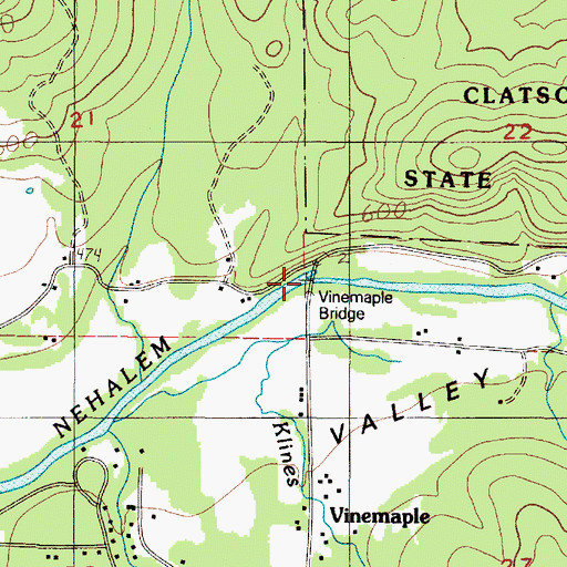 Vinemaple Bridge, Oregon Vinemaple Bridge is a bridge located in Clatsop County, OR at N45.89661° W123.54441° (NAD83) and at an elevation of 419 ft MSL. It can be seen on the USGS 1:24K topographic map Vinemaple, OR.