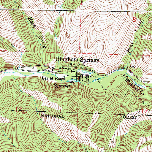Bingham Springs, Oregon Bingham Springs is a populated place located in Umatilla County, OR at N45.74208° W118.23190° (NAD83) and at an elevation of 2171 ft MSL. It can be seen on the USGS 1:24K topographic map Bingham Springs, OR.