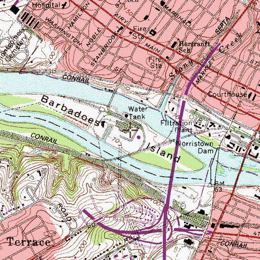 Barbadoes Island, Pennsylvania Barbadoes Island is a island located in Montgomery County, PA at N40.11289° W75.35491° (NAD83) and at an elevation of 68 ft MSL. It can be seen on the USGS 1:24K topographic map Norristown, PA.