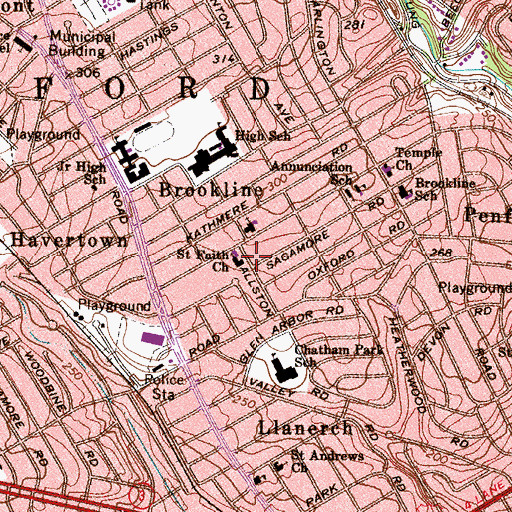 You can view this location or feature in our Topographic Map Viewer now. Click on map above to begin viewing in our Map Viewer. Here are some other places near Saint Faith Church that may be of interest: