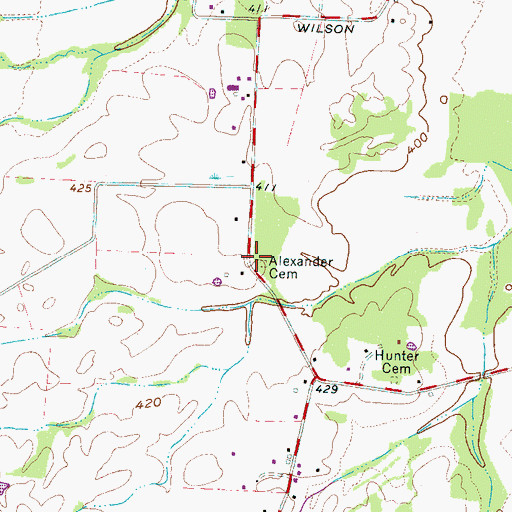 You can view this location or feature in our Topographic Map Viewer now. Click on map above to begin viewing in our Map Viewer. Here are some other places near Alexander Cemetery that may be of interest: