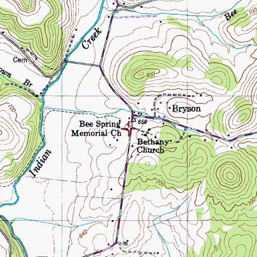 You can view this location or feature in our Topographic Map Viewer now. Click on map above to begin viewing in our Map Viewer. Here are some other places near Bee Spring Memorial Church that may be of interest: