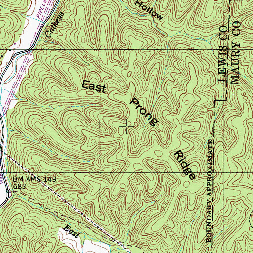 East Prong Ridge, Tennessee East Prong Ridge is a ridge located in Lewis County, TN at N35.60841° W87.36196° (NAD83) and at an elevation of 938 ft MSL. It can be seen on the USGS 1:24K topographic map Mount Joy, TN.