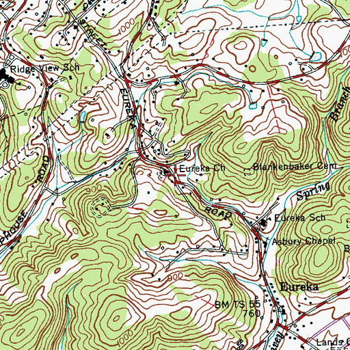 You can view this location or feature in our Topographic Map Viewer now. Click on map above to begin viewing in our Map Viewer. Here are some other places near Eureka Church that may be of interest: