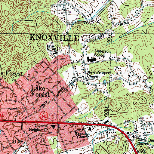 Lake Forest, Tennessee Lake Forest is a populated place located in Knox County, TN at N35.92675° W83.86768° (NAD83) and at an elevation of 977 ft MSL. It can be seen on the USGS 1:24K topographic map Shooks Gap, TN.