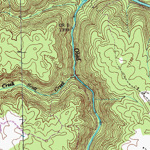 Scott Creek, Tennessee Scott Creek is a stream located in Cumberland County, TN at N36.04701° W84.99190° (NAD83) and at an elevation of 1384 ft MSL. It can be seen on the USGS 1:24K topographic map Fox Creek, TN.