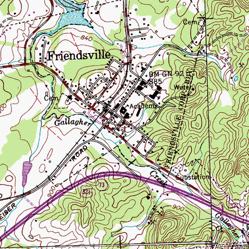 You can view this location or feature in our Topographic Map Viewer now. Click on map above to begin viewing in our Map Viewer. Here are some other places near Friendsville Church that may be of interest: