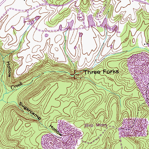 Three Forks, Tennessee Three Forks is a populated place located in Scott County, TN at N36.45008° W84.56994° (NAD83) and at an elevation of 1358 ft MSL. It can be seen on the USGS 1:24K topographic map Oneida South, TN.