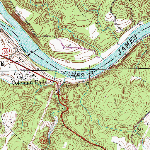 Cove Creek, Virginia Cove Creek is a stream located in Bedford County, VA at N37.49931° W79.29392° (NAD83) and at an elevation of 561 ft MSL. It can be seen on the USGS 1:24K topographic map Boonsboro, VA.