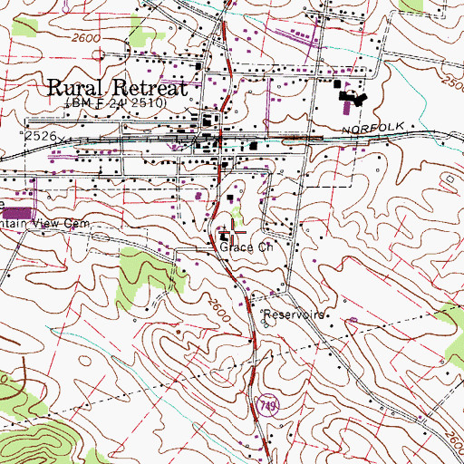 Grace Church, Virginia Grace Church is a church located in Wythe County, VA at N36.88984° W81.27538° (NAD83) and at an elevation of 2582 ft MSL. It can be seen on the USGS 1:24K topographic map Rural Retreat, VA.