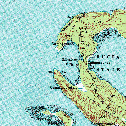Shallow Bay, Washington Shallow Bay is a bay located in San Juan County, WA at N48.76261° W122.91658° (NAD83) and at an elevation of 0 ft MSL. It can be seen on the USGS 1:24K topographic map Sucia Island, WA.