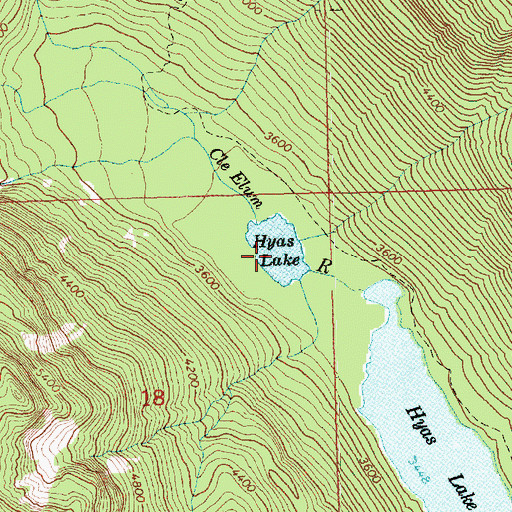 Hyas Lake, Washington Hyas Lake is a lake located in Kittitas County, WA at N47.57450° W121.12923° (NAD83) and at an elevation of 3471 ft MSL. It can be seen on the USGS 1:24K topographic map Mount Daniel, WA.