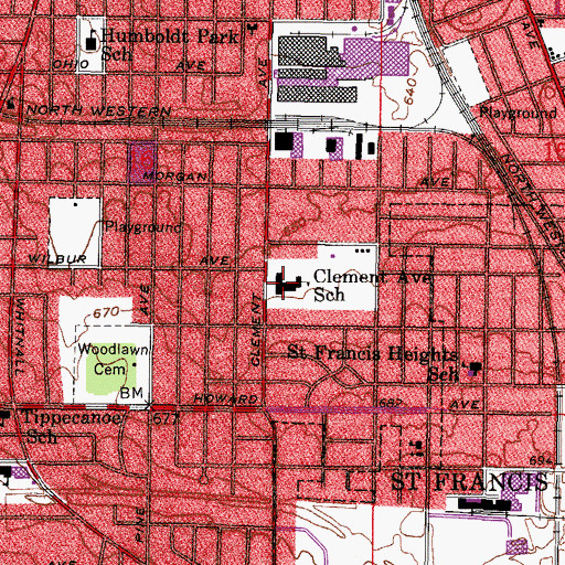 You can view this location or feature in our Topographic Map Viewer now. Click on map above to begin viewing in our Map Viewer. Here are some other places near Clement Avenue School that may be of interest: Note: Coordinates in the location and feature list above are referenced to NAD83 datum. |