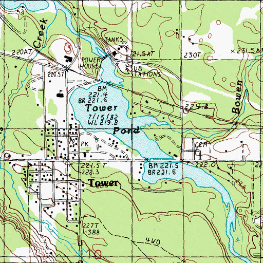 Tower Pond, Michigan Tower Pond is a reservoir located in Cheboygan County, MI at N45.35721° W84.29340° (NAD83) and at an elevation of 721 ft MSL. It can be seen on the USGS 1:24K topographic map Tower, MI.