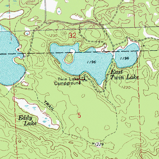 Twin Lakes Campground, Michigan Twin Lakes Campground is a locale located in Roscommon County, MI at N44.24419° W84.45862° (NAD83) and at an elevation of 1220 ft MSL. It can be seen on the USGS 1:24K topographic map Butman, MI.