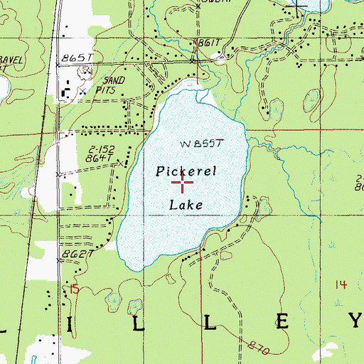 You can view this location or feature in our Topographic Map Viewer now. Click on map above to begin viewing in our Map Viewer. Here are some other places near Pickerel Lake that may be of interest: