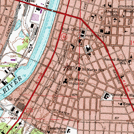 You can view this location or feature in our Topographic Map Viewer now. Click on map above to begin viewing in our Map Viewer. Here are some other places near Saint Marys Hospital Heliport that may be of interest: