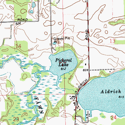 You can view this location or feature in our Topographic Map Viewer now. Click on map above to begin viewing in our Map Viewer. Here are some other places near Pickerel Lake that may be of interest: