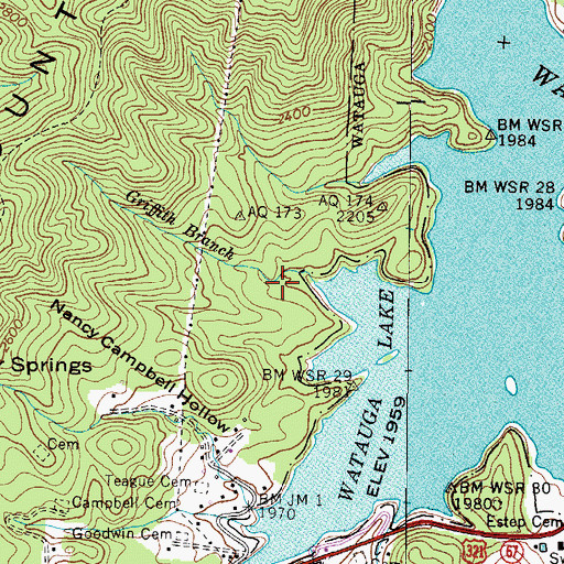 You can view this location or feature in our Topographic Map Viewer now. Click on map above to begin viewing in our Map Viewer. Here are some other places near Watauga Lake Shelter that may be of interest: