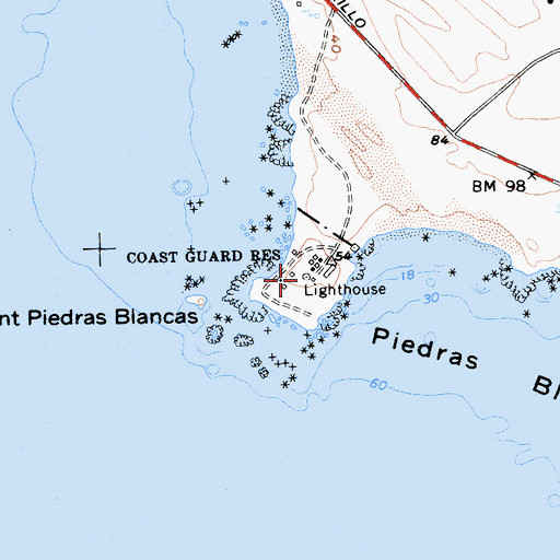 You can view this location or feature in our Topographic Map Viewer now. Click on map above to begin viewing in our Map Viewer. Here are some other places near Piedras Blancas Lighthouse that may be of interest: