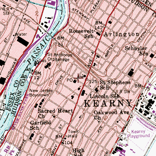 Kearney Post Office, New Jersey Kearney Post Office is a post office located in Hudson County, NJ at N40.77149° W74.14625° (NAD83) and at an elevation of 127 ft MSL. It can be seen on the USGS 1:24K topographic map Orange, NJ.