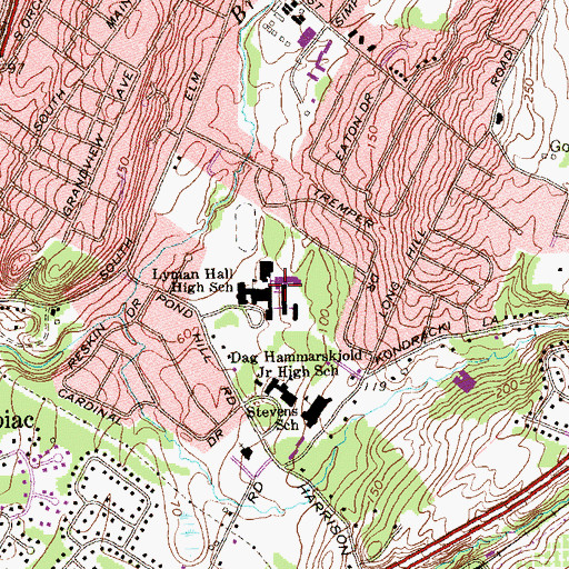 You can view this location or feature in our Topographic Map Viewer now. Click on map above to begin viewing in our Map Viewer. Here are some other places near Lyman Hall High School that may be of interest: