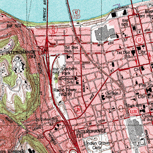 You can view this location or feature in our Topographic Map Viewer now. Click on map above to begin viewing in our Map Viewer. Here are some other places near Saint Aloysius Roman Catholic Church that may be of interest:
