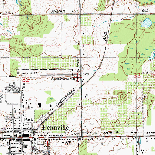 Apostolica Church, Michigan Apostolica Church is a church located in Allegan County, MI at N42.60139° W86.09528° (NAD83) and at an elevation of 669 ft MSL. It can be seen on the USGS 1:24K topographic map Fennville, MI.