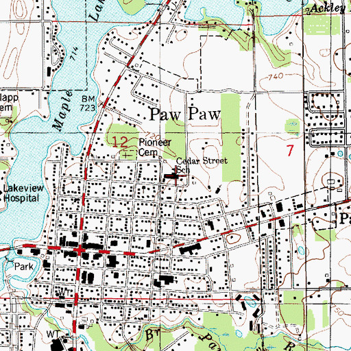 Cedar Street School, Michigan Cedar Street School is a school located in Van Buren County, MI at N42.22139° W85.88417° (NAD83) and at an elevation of 734 ft MSL. It can be seen on the USGS 1:24K topographic map Paw Paw, MI.