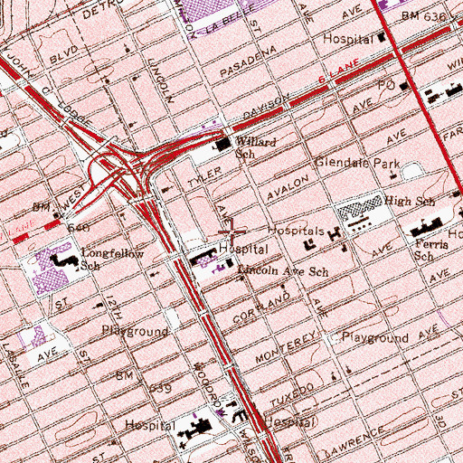 It can be seen on the USGS 1:24K topographic map Highland Park, MI.