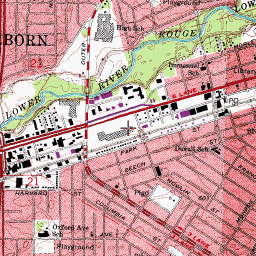 You can view this location or feature in our Topographic Map Viewer now. Click on map above to begin viewing in our Map Viewer. Here are some other places near Dearborn Post Office that may be of interest: