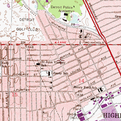 It can be seen on the USGS 1:24K topographic map Highland Park, MI.