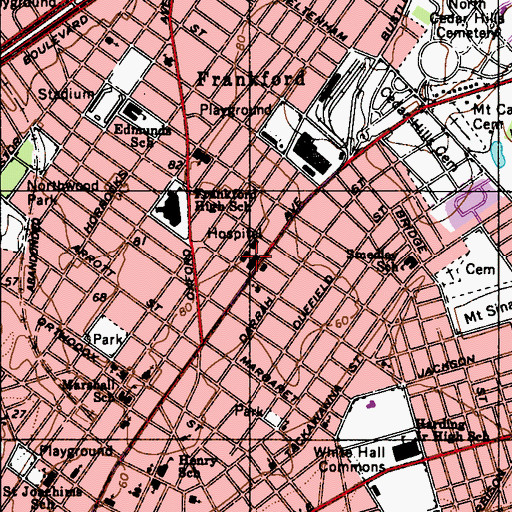 You can view this location or feature in our Topographic Map Viewer now. Click on map above to begin viewing in our Map Viewer. Here are some other places near Aria Frankford Hospital that may be of interest: