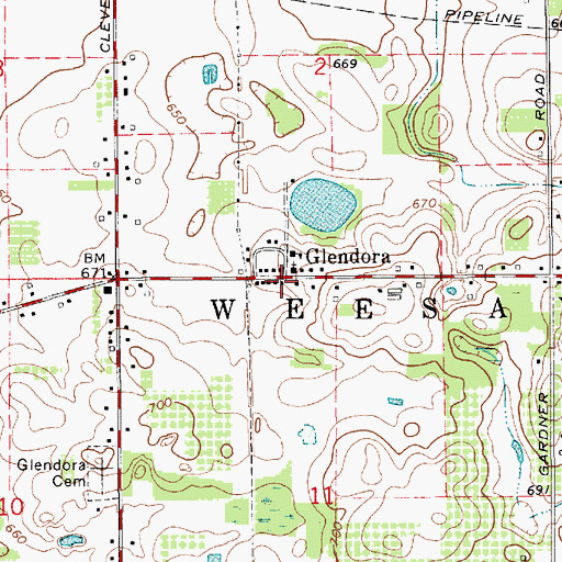 Glendora Post Office (historical), Michigan Glendora Post Office (historical) is a post office located in Berrien County, MI at N41.88500° W86.48694° (NAD83) and at an elevation of 679 ft MSL. It can be seen on the USGS 1:24K topographic map Baroda, MI.