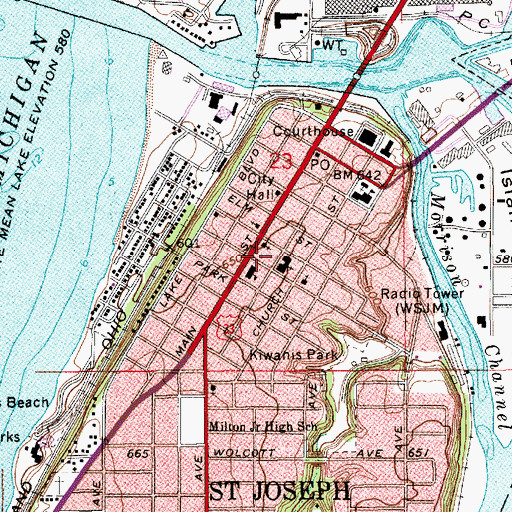 Trinity Lutheran Church, Michigan Trinity Lutheran Church is a church located in Berrien County, MI at N42.10583° W86.48278° (NAD83) and at an elevation of 649 ft MSL. It can be seen on the USGS 1:24K topographic map Benton Harbor, MI.