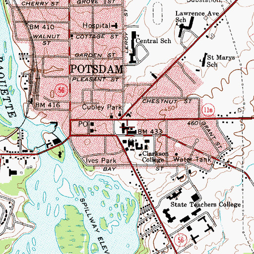 Snell Hall, New York Snell Hall is a building located in St. Lawrence County, NY at N44.66917° W74.98139° (NAD83) and at an elevation of 429 ft MSL. It can be seen on the USGS 1:24K topographic map Potsdam, NY.
