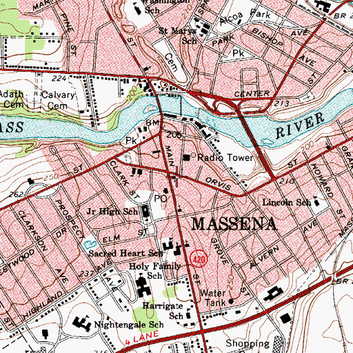 First Baptist Church, New York First Baptist Church is a church located in St. Lawrence County, NY at N44.93000° W74.89222° (NAD83) and at an elevation of 209 ft MSL. It can be seen on the USGS 1:24K topographic map Massena, NY.