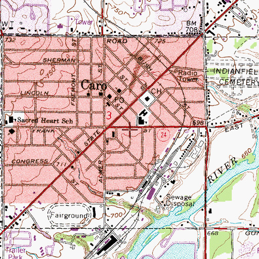 You can view this location or feature in our Topographic Map Viewer now. Click on map above to begin viewing in our Map Viewer. Here are some other places near Caro Medical Clinic that may be of interest: