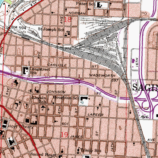 Interchance 2A, Michigan Interchance 2A is a crossing located in Saginaw County, MI at N43.43611° W83.92389° (NAD83) and at an elevation of 600 ft MSL. It can be seen on the USGS 1:24K topographic map Saginaw, MI.