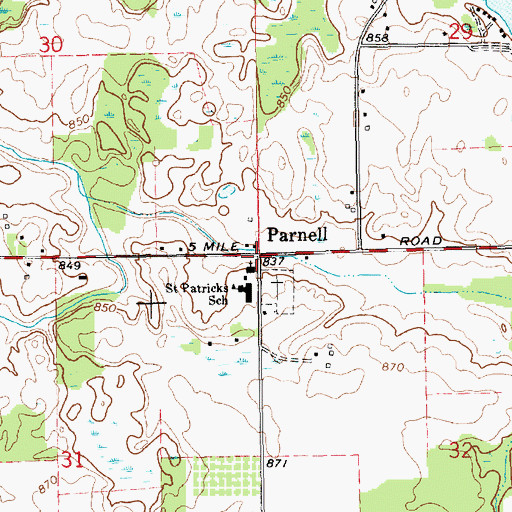 Parnell Post Office (historical), Michigan Parnell Post Office (historical) is a post office located in Kent County, MI at N43.04333° W85.41139° (NAD83) and at an elevation of 836 ft MSL. It can be seen on the USGS 1:24K topographic map Cannonsburg, MI.