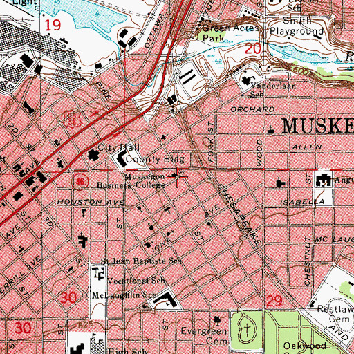 You can view this location or feature in our Topographic Map Viewer now. Click on map above to begin viewing in our Map Viewer. Here are some other places near Muskegon Business College Historical Marker that may be of interest: