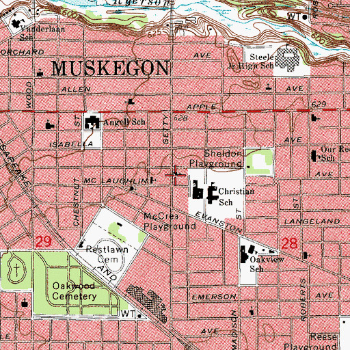 Philadelphia Baptist Church, Michigan Philadelphia Baptist Church is a church located in Muskegon County, MI at N43.23083° W86.22389° (NAD83) and at an elevation of 629 ft MSL. It can be seen on the USGS 1:24K topographic map Muskegon East, MI.