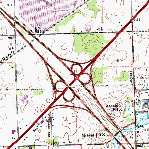 Interchange 98B, Michigan Interchange 98B is a crossing located in Eaton County, MI at N42.67778° W84.65222° (NAD83) and at an elevation of 912 ft MSL. It can be seen on the USGS 1:24K topographic map Dimondale, MI.