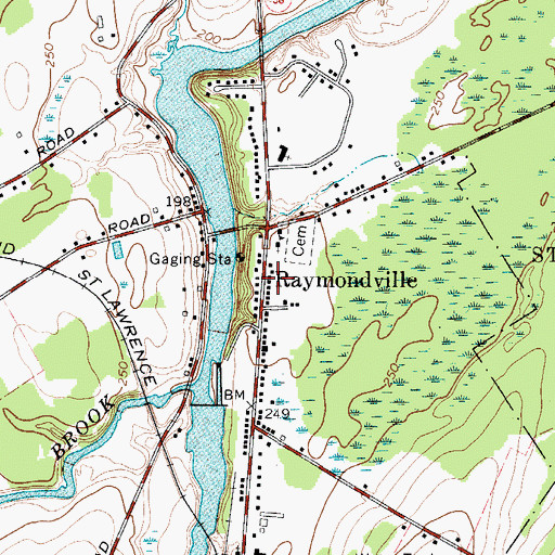 Raymondville Post Office, New York Raymondville Post Office is a post office located in St. Lawrence County, NY at N44.83815° W74.97732° (NAD83) and at an elevation of 252 ft MSL. It can be seen on the USGS 1:24K topographic map Norfolk, NY.