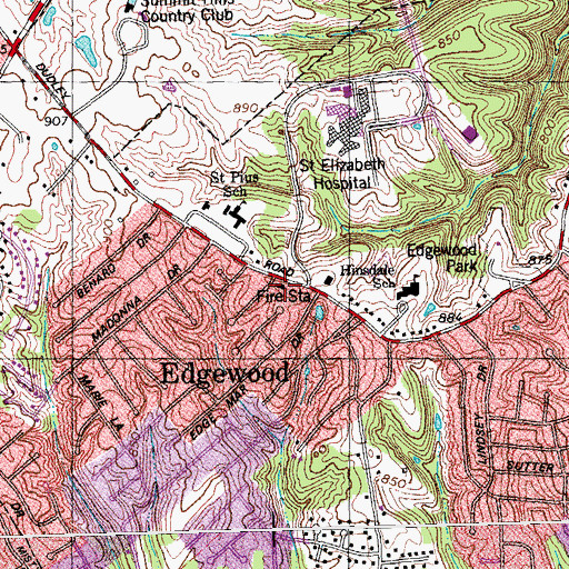 Edgewood Fire Department, Kentucky Edgewood Fire Department is a building located in Kenton County, KY at N39.00794° W84.56591° (NAD83) and at an elevation of 892 ft MSL. It can be seen on the USGS 1:24K topographic map Covington, KY.