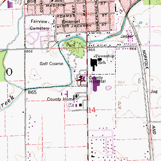 You can view this location or feature in our Topographic Map Viewer now. Click on map above to begin viewing in our Map Viewer. Here are some other places near IU Health Tipton Hospital that may be of interest: